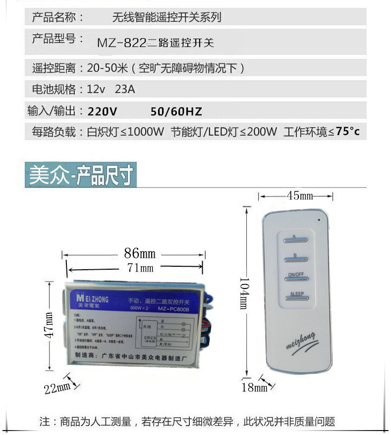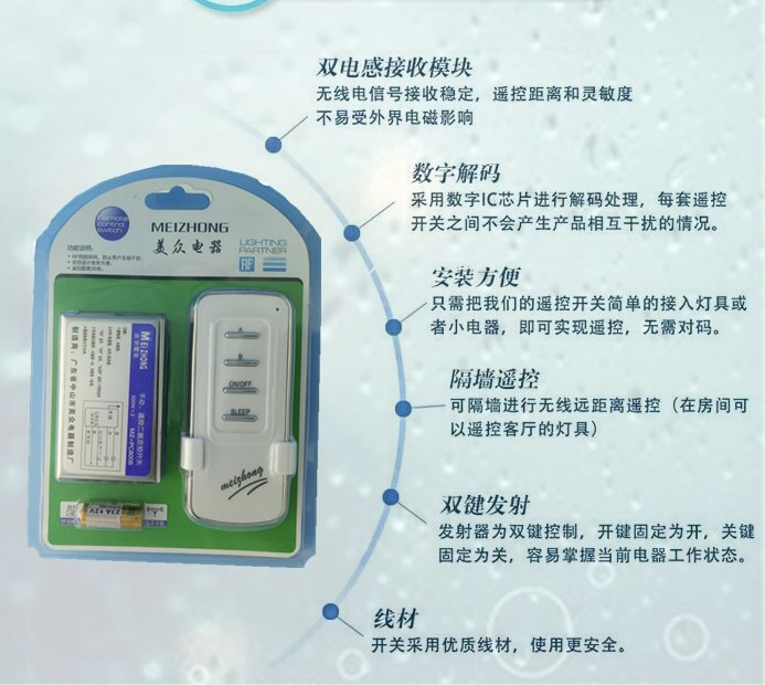型号 MZ-822 类型 二路数码遥控开关 工作电压 220V