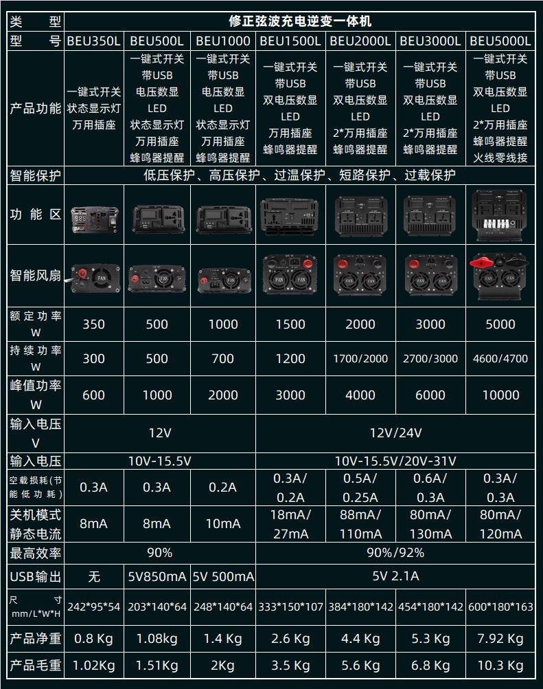 持续输出功率 5000(W) 规格 12V5000W(峰值10KW)修正弦波ups充电逆变器,24V5000W(峰值10KW)修正弦波ups充电逆变器 主要下游平台 ebay,亚马逊,wish,速卖通,独立站,Shopee