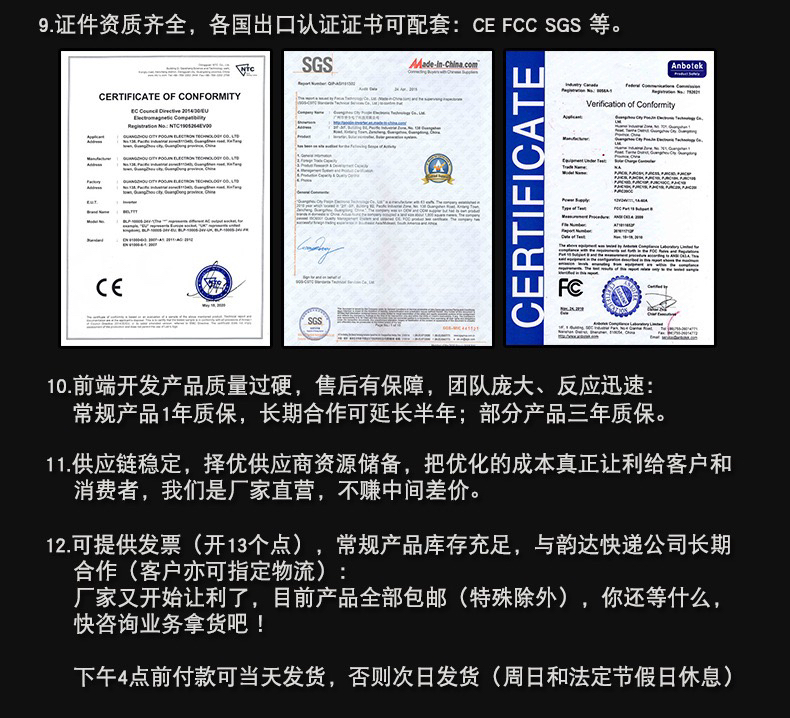 类型 车载逆变器 产品认证 ce 电路拓扑结构 推挽式