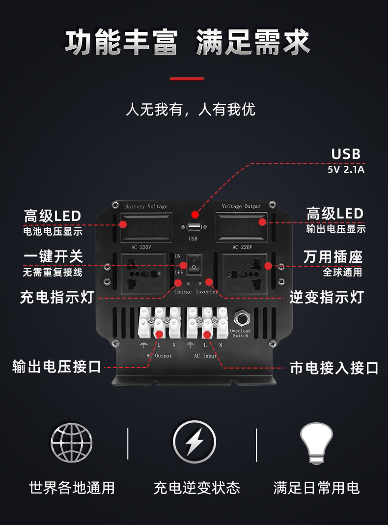 24v逆变器5000w大功率足电压充电逆变一体机12v逆变充电器厂家直供