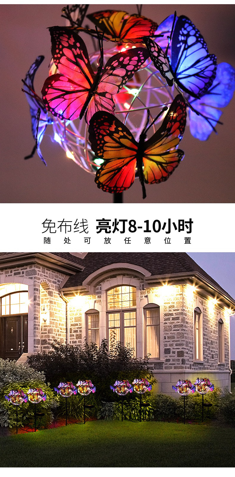 亚马逊户外太阳能庭院草坪蝴蝶球地插花灯LED花灯装饰春天景观灯