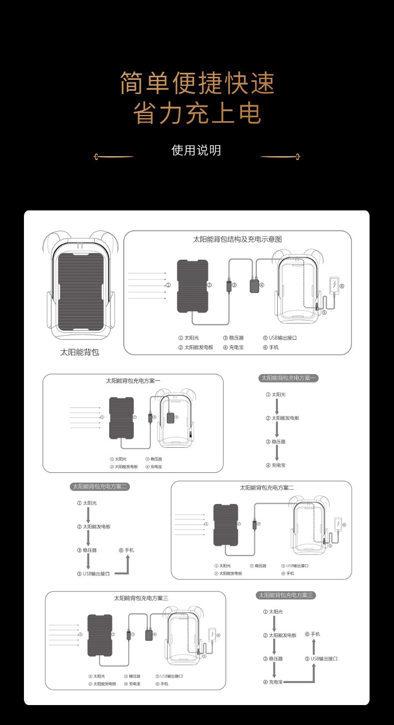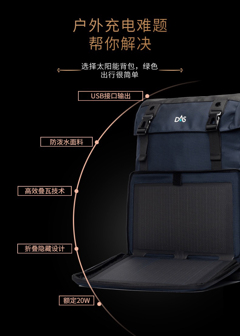 户外应急20W太阳能背包 USB充电双肩包 男士休闲跨境电脑包