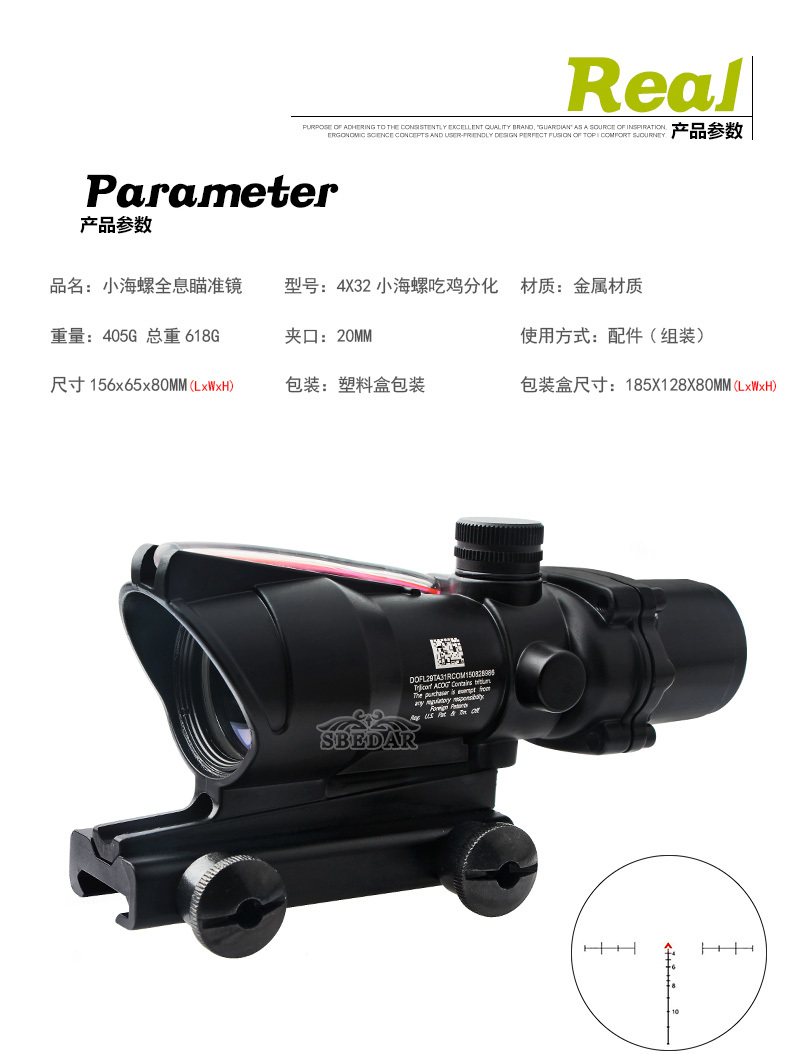 4X32吃鸡游戏同款箭头分化红光纤小海螺瞄准镜