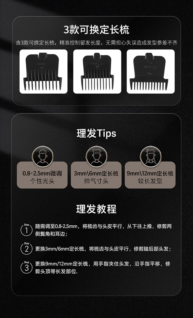 大功率发廊专用理发剪 LED数显电动油头剪 USB便携充电电推剪批发