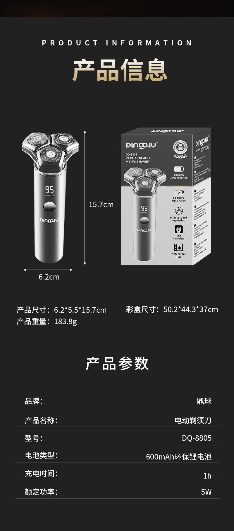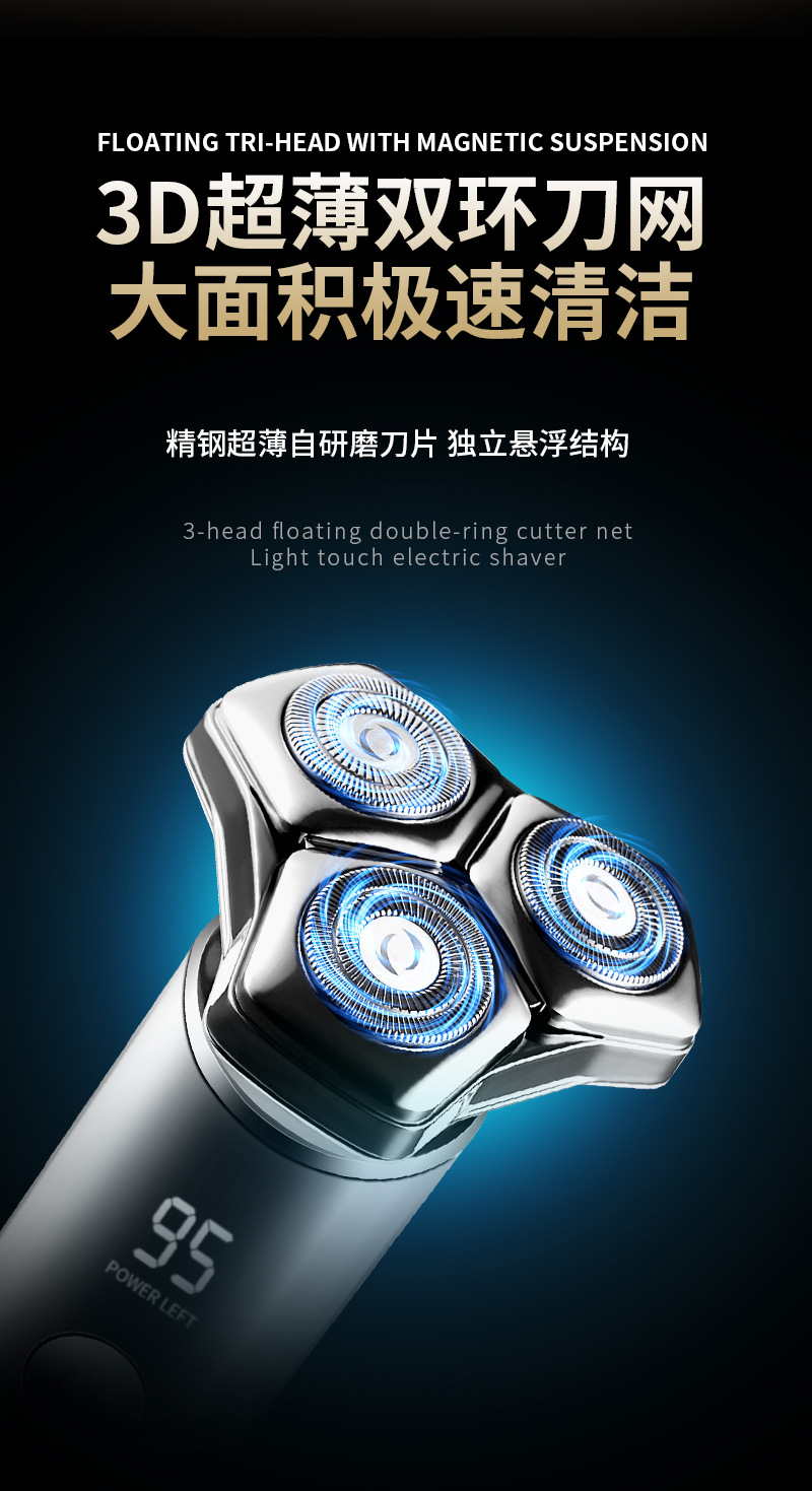 电动剃须刀防夹须可水洗数显多功能磁吸浮动三刀头刮胡刀数显