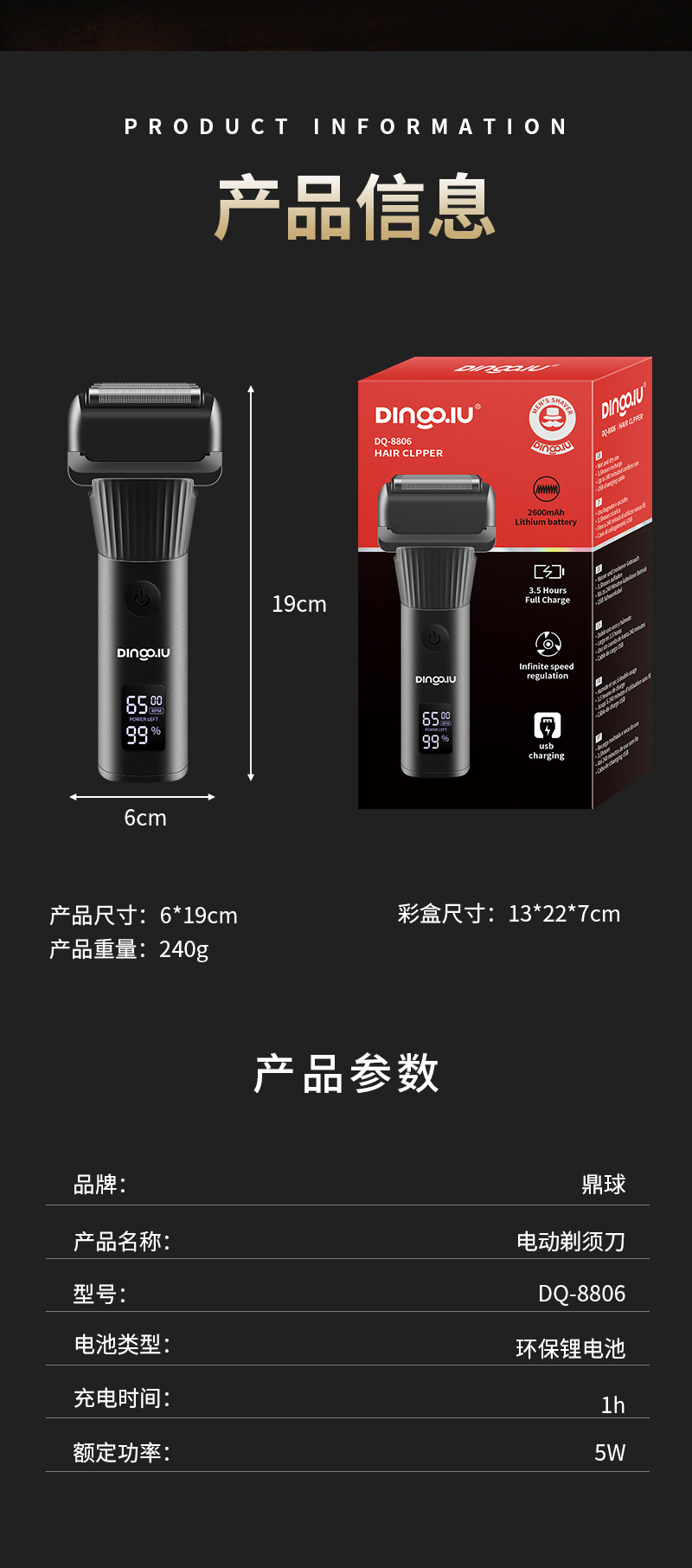 跨境智能数显往复式胡须刀 男士水洗充电剃须刀往复式5刀头剃须刀