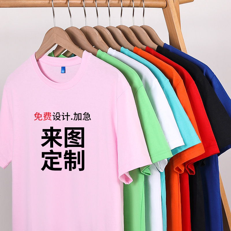 加工定制180gT恤圆领宽松短袖广告衫工作服班服印字logo团体服