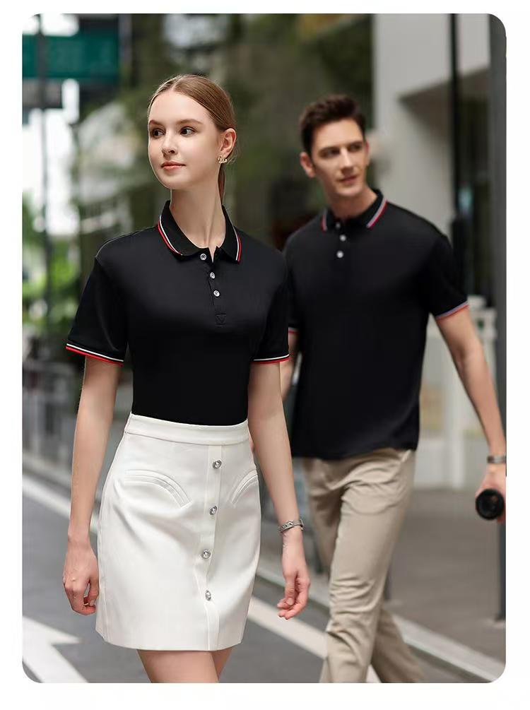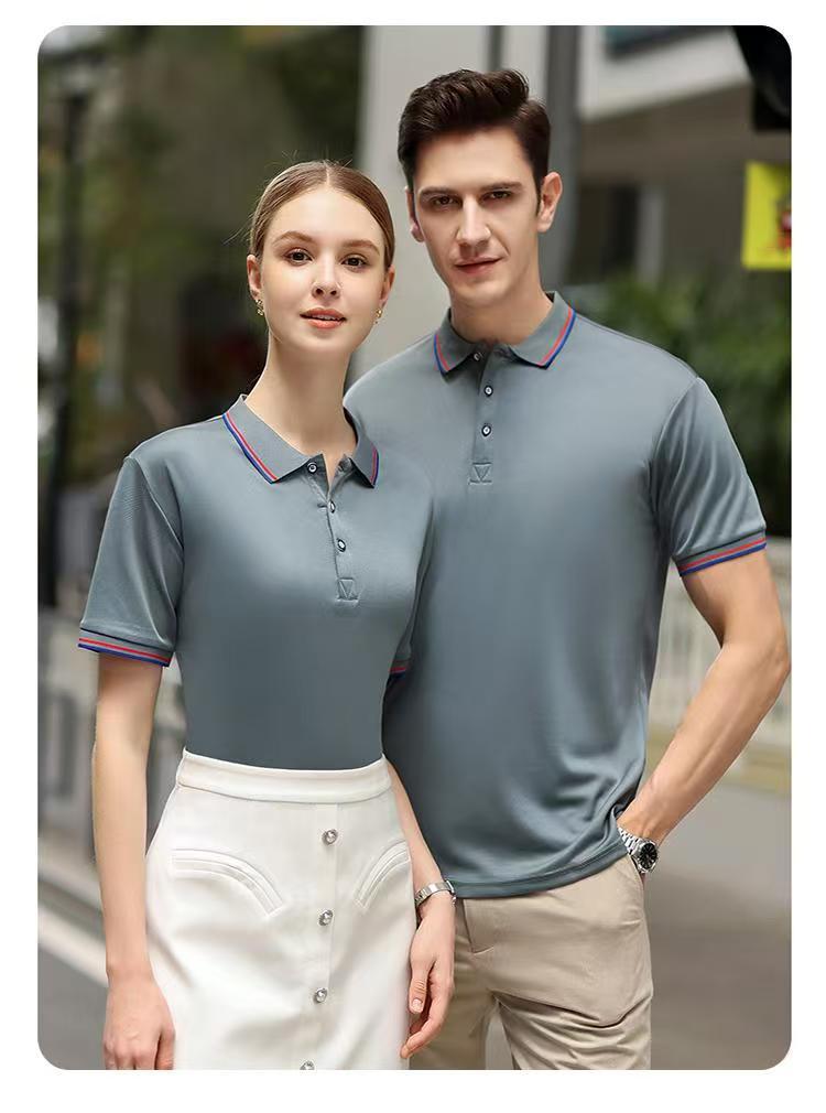 短袖翻领工作服POLO衫半袖冰丝t恤团建刺绣印logo餐饮工服定制