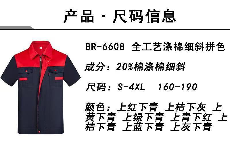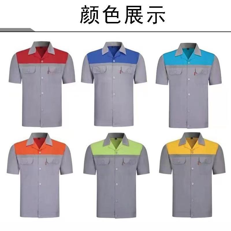 涤棉拼色拉链工短袖工装