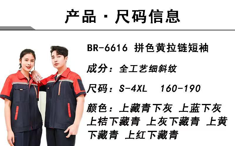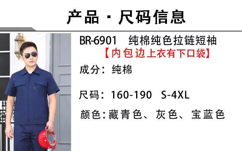 纯棉纯色拉链短袖工程服+裤子