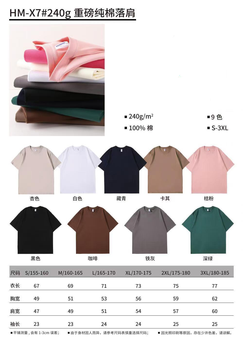 240G重磅纯棉款-9色可选 短袖