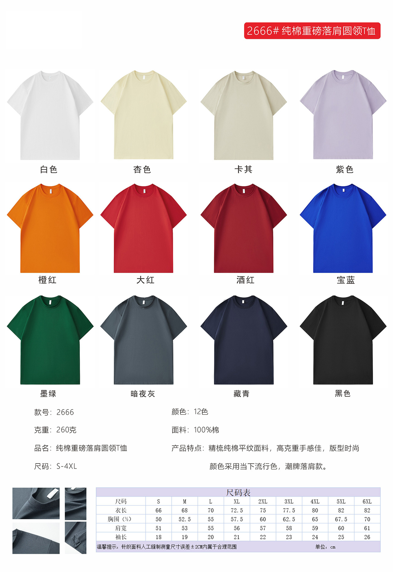 260G重磅升级款纯棉T恤-12色可选 短袖