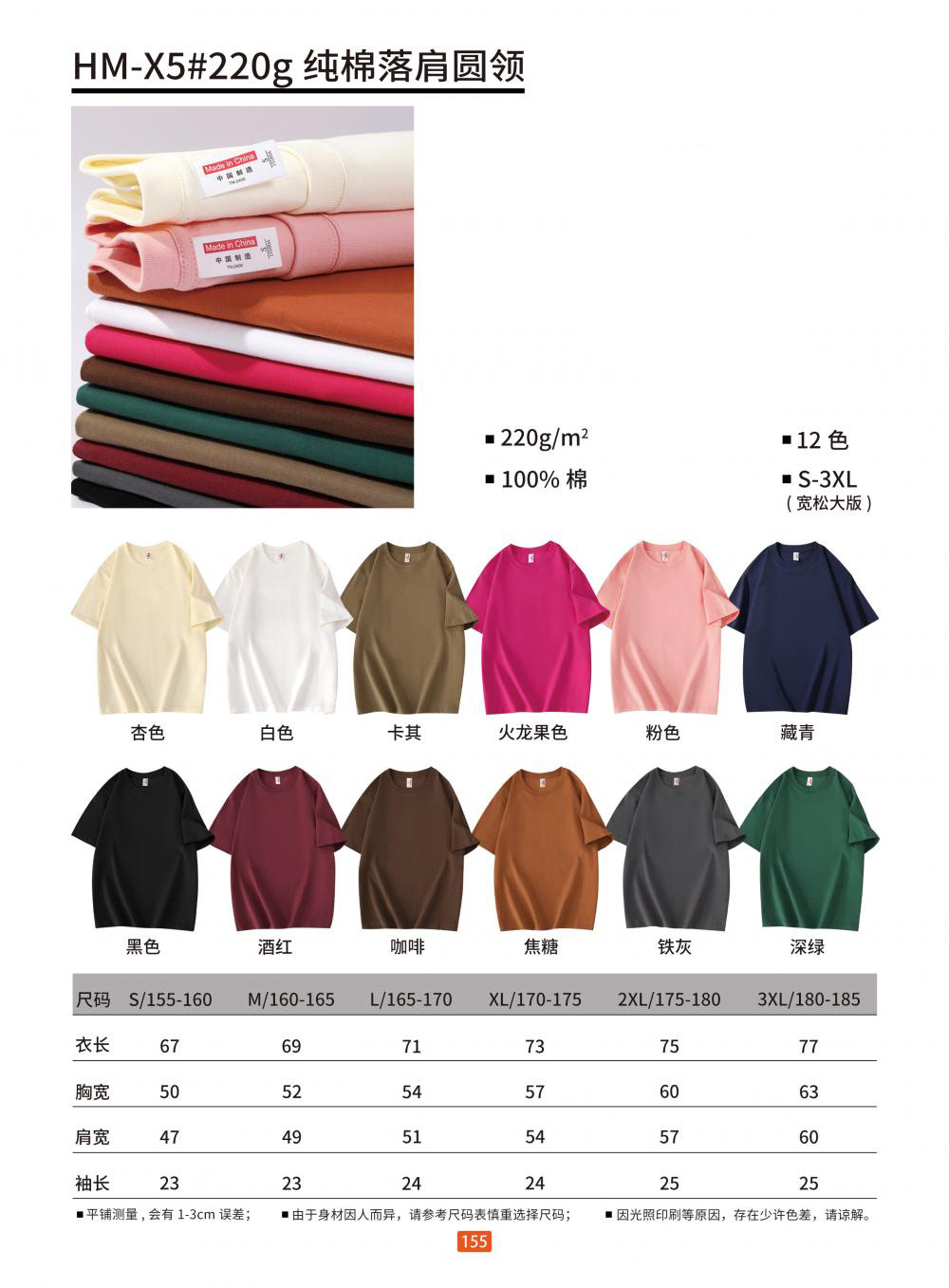 180G基础款纯棉T恤-12色可选短袖