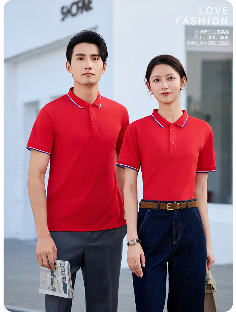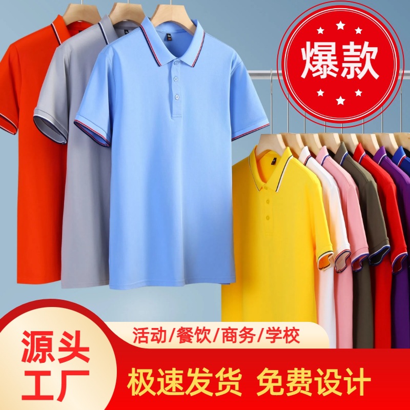 文化衫翻领短袖T恤印logo广告POLO刺绣餐饮工装团体服重磅棉质