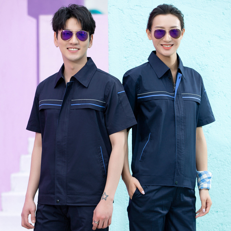 夏季短袖工作服套装男工厂车间工人工地工装汽修服薄款透气劳保服