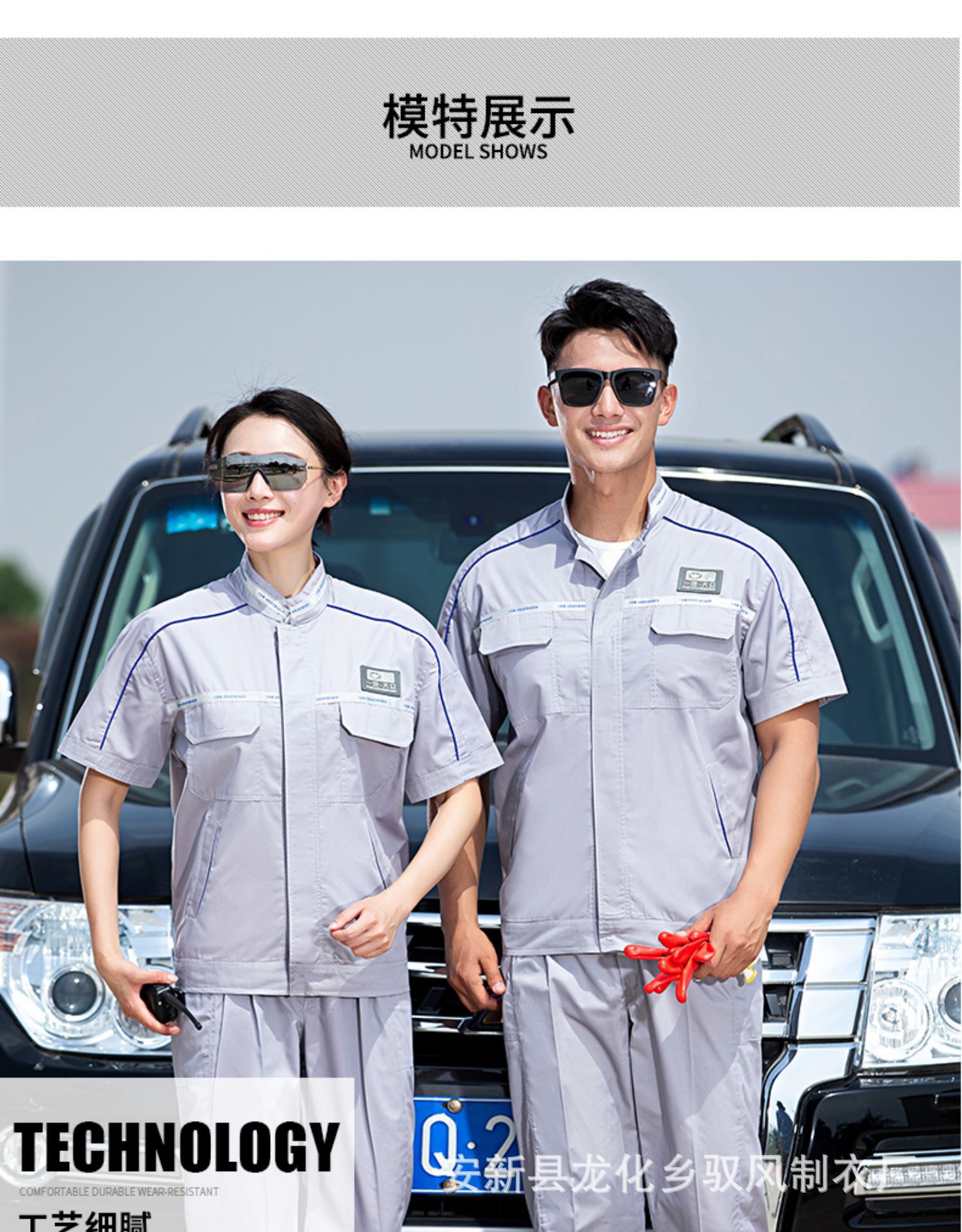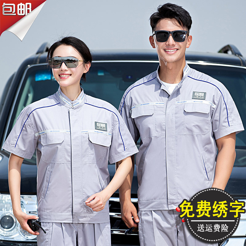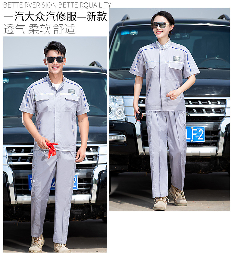 新款一汽大众4s店夏季短袖工作服套装男耐磨车间售后维修服汽修服