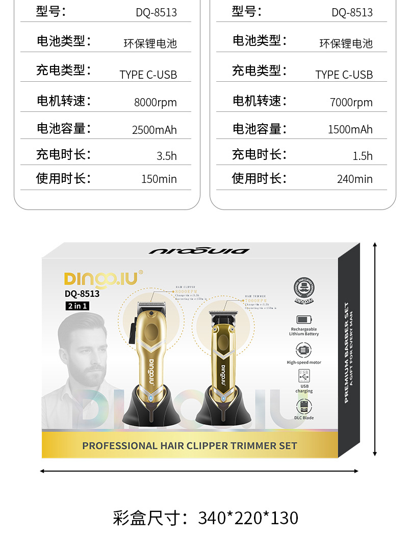 DQ-8513跨境油头子母套装理发器发廊理发店专用电动剃头发电推剪