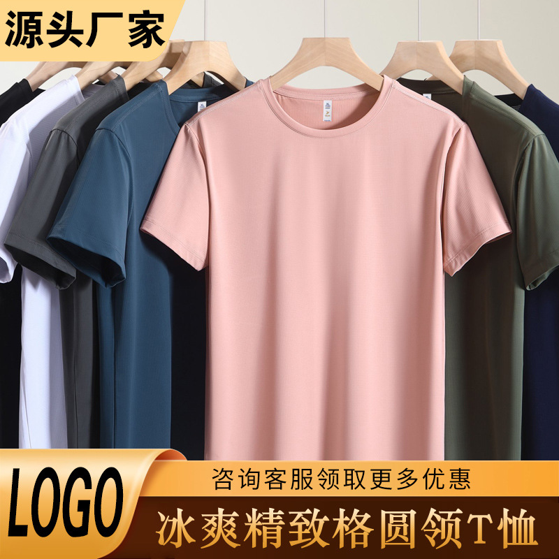 180克冰爽水晶格圆领T恤衫速干排汗运动户外上衣短袖T恤LOGO批发