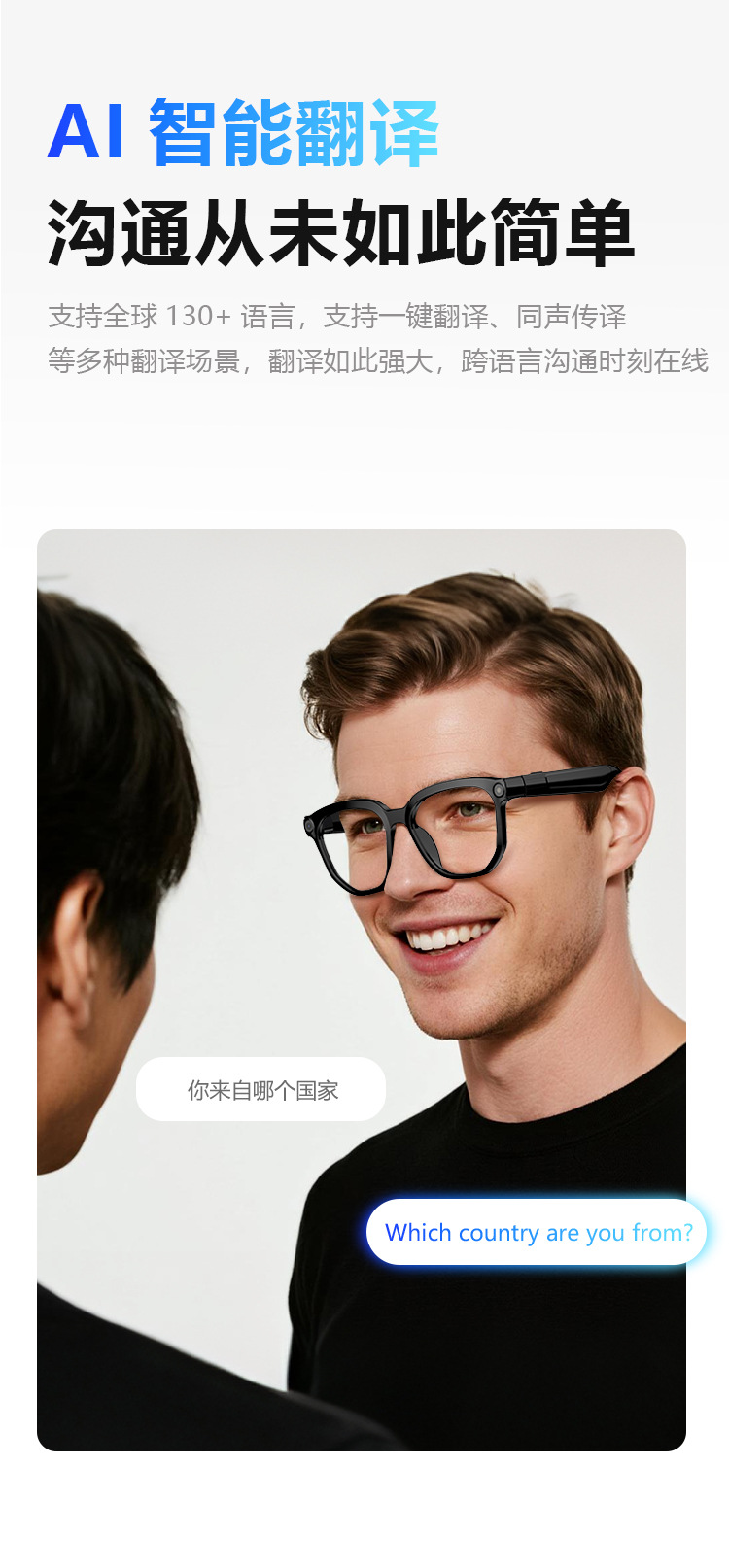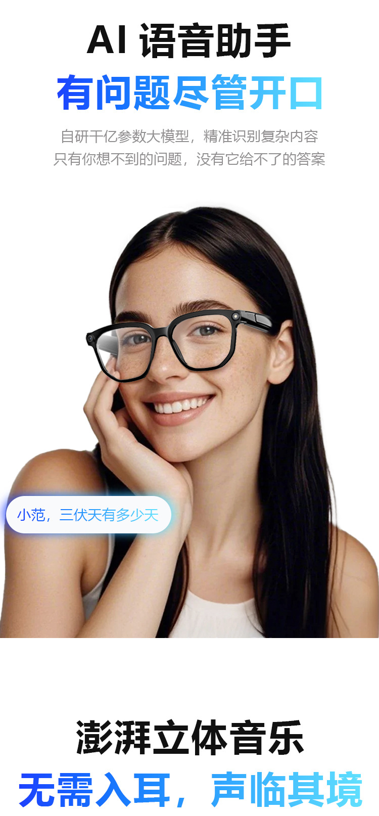 AI106智能眼镜通话高清拍照识物眼镜录像AI翻译语音助手听音乐