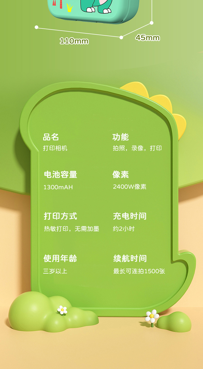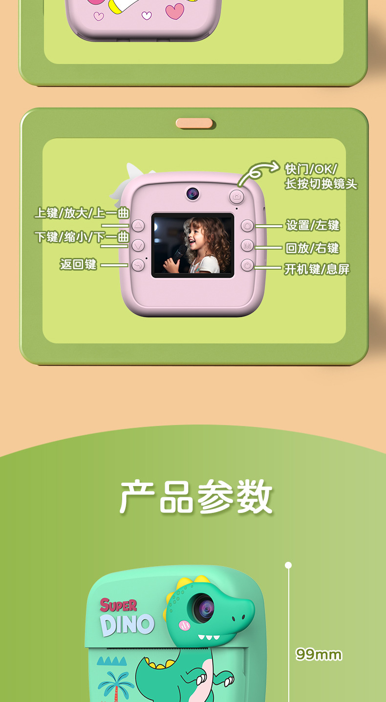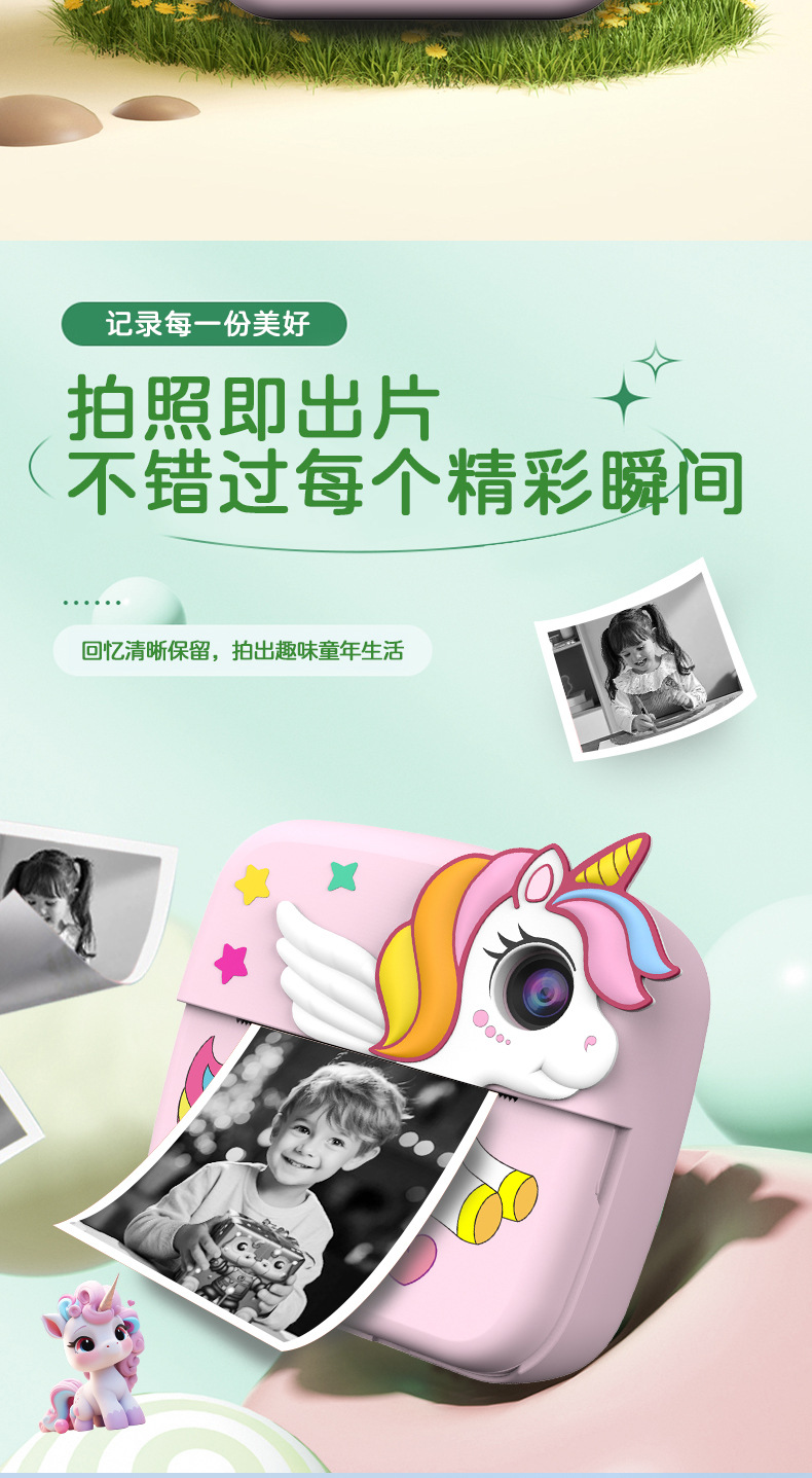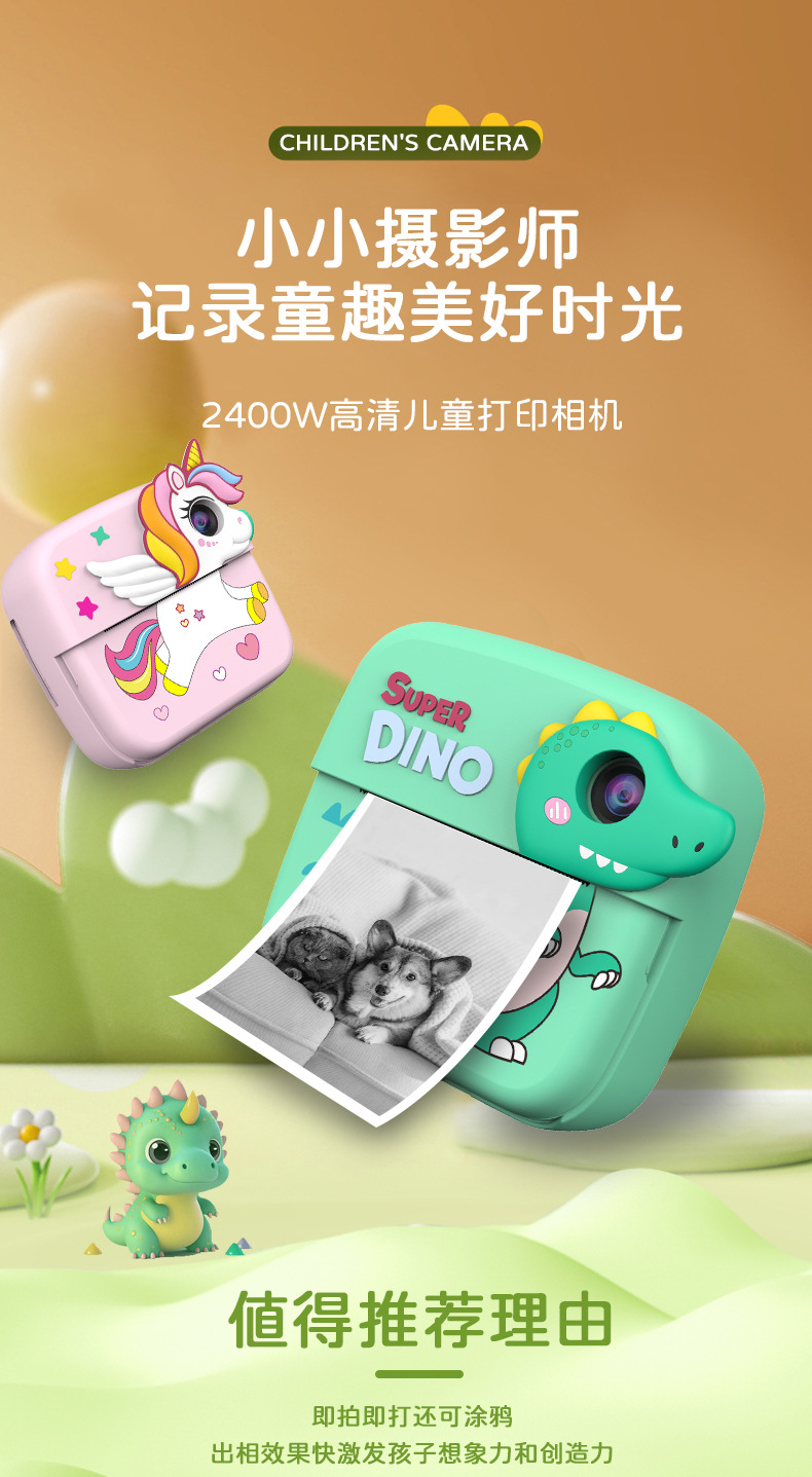跨境迷你儿童拍立得打印相机高清录像照片卡通双摄头单反数码相机